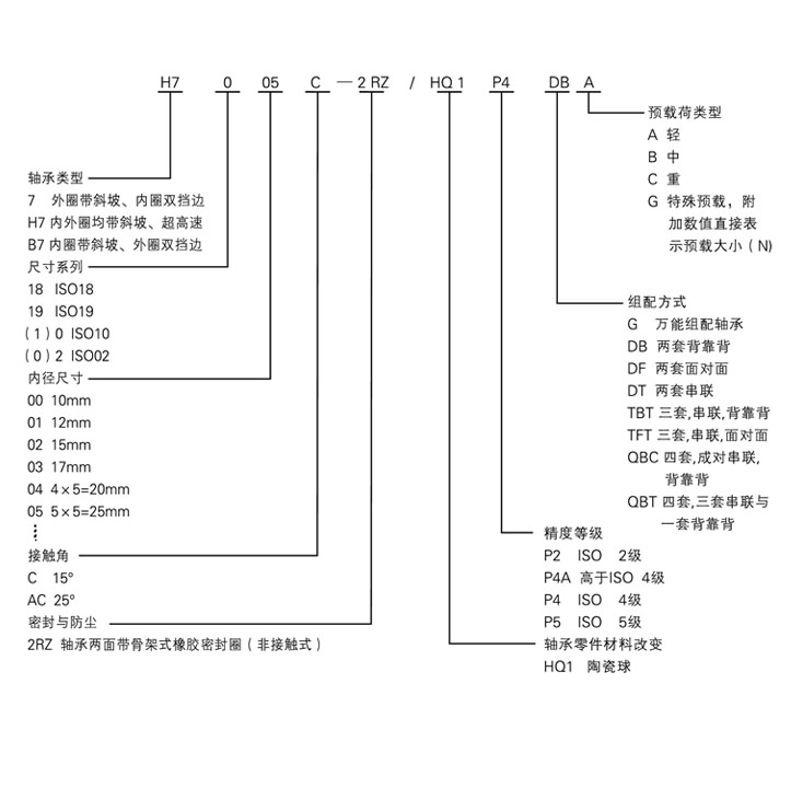 角接觸球軸承代號示例